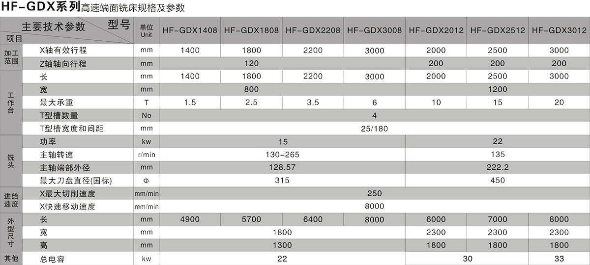特點:床身和銑頭底座為一整體鑄造,機床整體剛性好,床身為靜壓導軌,載重量大,(X軸)工作臺傳動為滾珠絲桿傳動,精確度高,銑削速度快,效率高。主軸為手動換擋調速相結合,工作臺進給為變頻調速,最快退刀速度可達8米/分鐘。