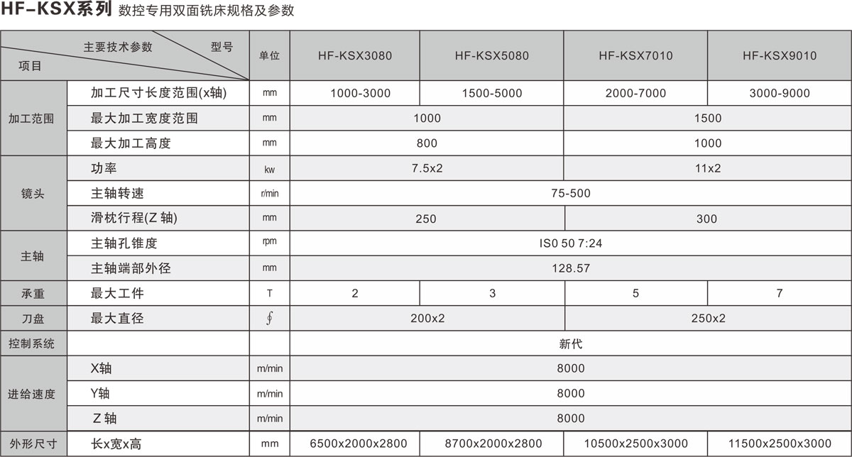 數(shù)控專用雙面銑床是根據(jù)客戶要求,專門銑削長(zhǎng)零件兩端面的專用數(shù)控雙面機(jī)床,本機(jī)床主要由兩組工作臺(tái)與立柱、床身組成。工作臺(tái)與立柱固定、銑頭上下移動(dòng)。具有兩側(cè)同時(shí)同向銑削、效率高、精度好、操作簡(jiǎn)便等優(yōu)點(diǎn),控制系統(tǒng)采用臺(tái)灣新代數(shù)控系統(tǒng),六軸三聯(lián)動(dòng)。